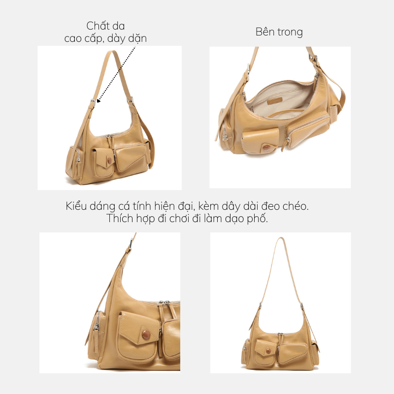 Túi nữ MICOCAH Haruhi dáng hobo da trơn đẹp cao cấp cá tính đeo vai